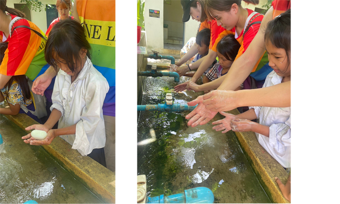 手洗い習慣を身につけることで衛生面の配慮が出来るように支援しました。衛生教育を交えた図工要素のある出張授業が新鮮でとても楽しく石鹸づくりを進めている様子でした。現地のスタッフの方や先生方からも大好評でした。最後には手の洗い方を一緒に確認しました。